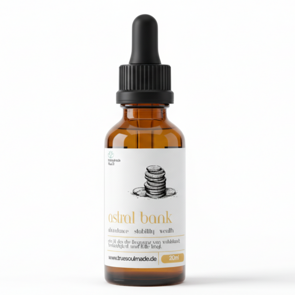 Astral Bank ist ein Energie-Öl, das die Schwingung von Wohlstand, Stabilität und langfristiger Fülle trägt. Es wird rituell genutzt, um finanzielle Energie zu harmonisieren, Reichtum ins Feld einzuladen und den Fluss von materieller und energetischer Fülle zu verankern. Dieses Öl erinnert dich daran, dich mit der Frequenz von Beständigkeit, Fülle und Reichtum zu verbinden.