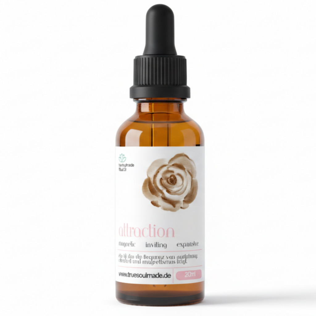 Attraction ist ein Energie-Öl, das die Schwingung von Anziehung und Magnetismus trägt. Es unterstützt dich darin, Türen zu öffnen, Begegnungen einzuladen und neue Möglichkeiten in dein Feld zu ziehen. Ein ritueller Begleiter, wenn du deine Ausstrahlung verstärken und dich mit der Frequenz von Offenheit und Anziehung verbinden möchtest.